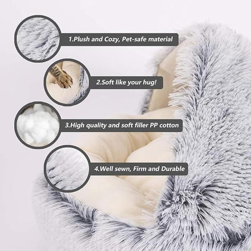 The fluffy warm cat bed is designed to retain heat, providing a cozy and safe environment for your pet during the cold winter months.